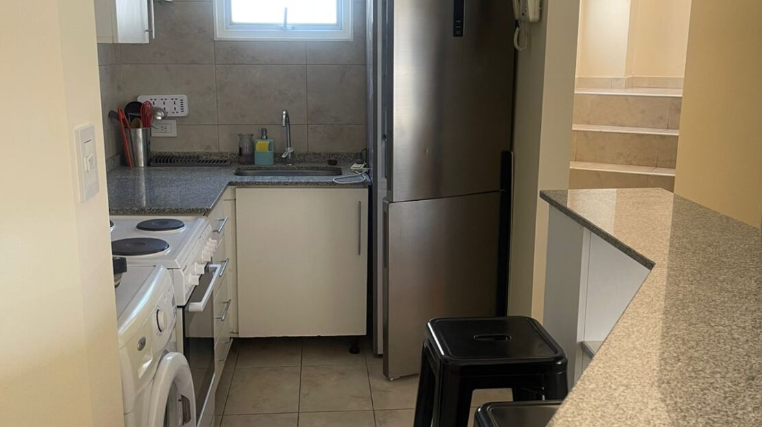 Amoblado y equipado . Cocina semi integrada con ventana al exterior. .
